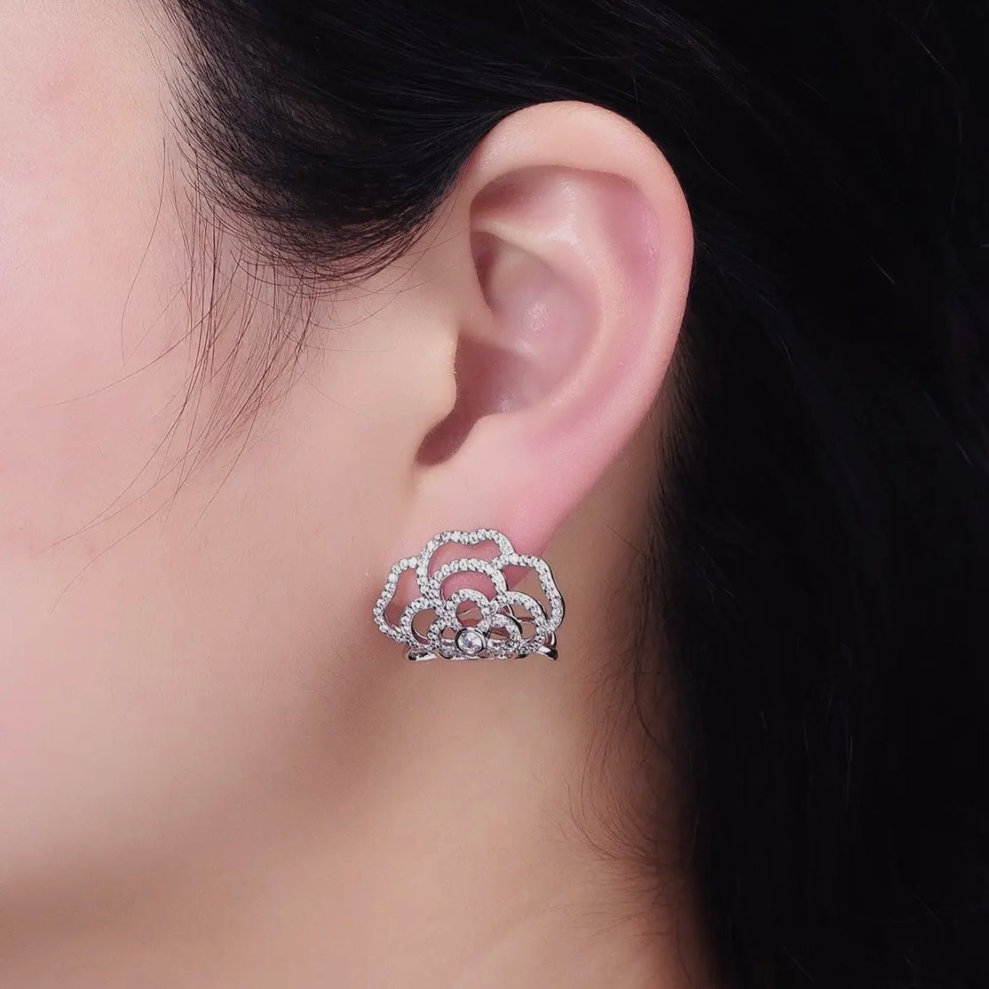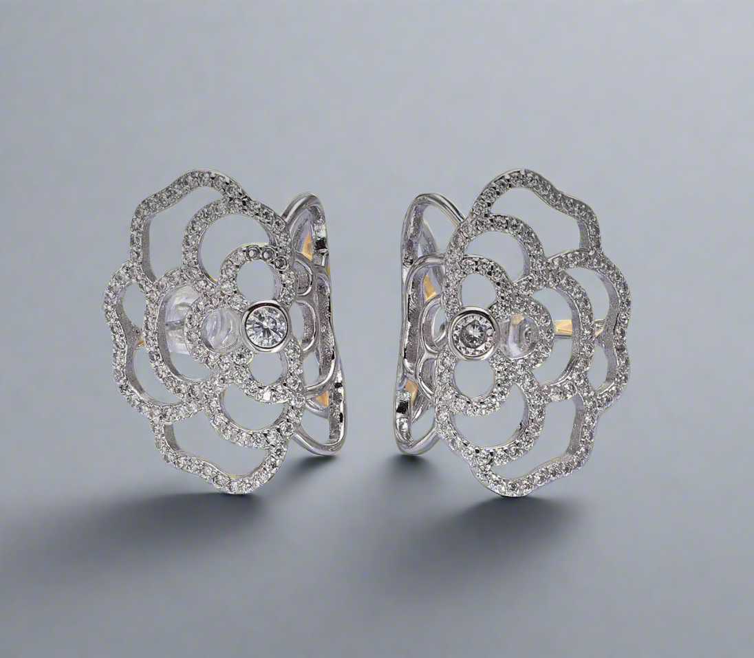 Classic and bold design these rose earrings slightly wrap around earlobe accented with shiny cz’s. Faultless choice for any day.