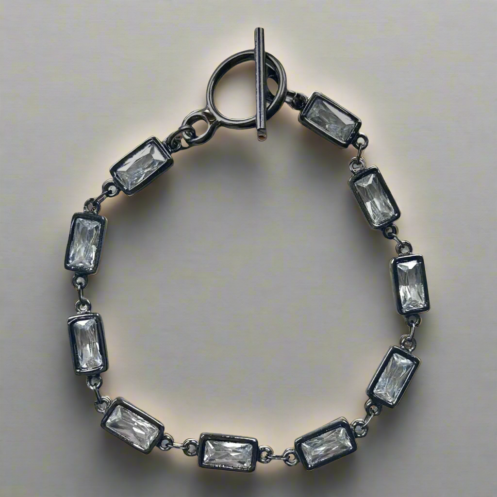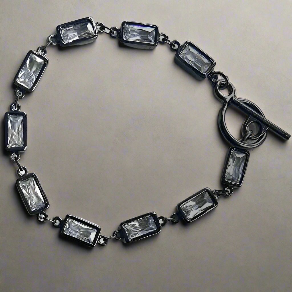 10mm crystal chunk links makes this gunmetal color tennis bracelet a fun choice for a daywear stack or worn alone.
