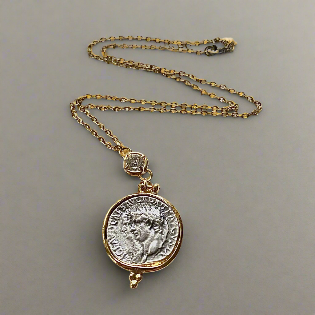 Smitten with this modern medallion and believed by some to bring good fortune. True or not lightweight coin necklace will add a favorable outcome to any look.