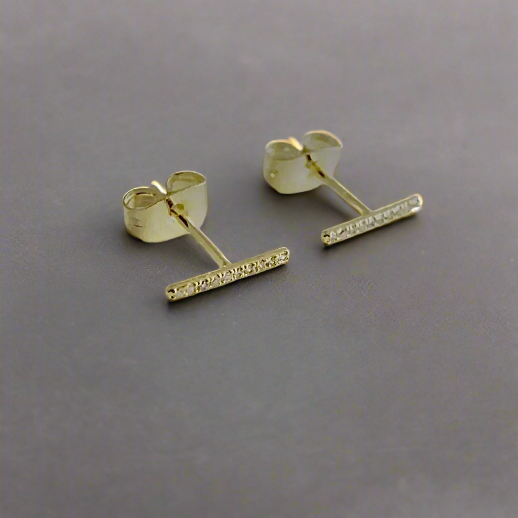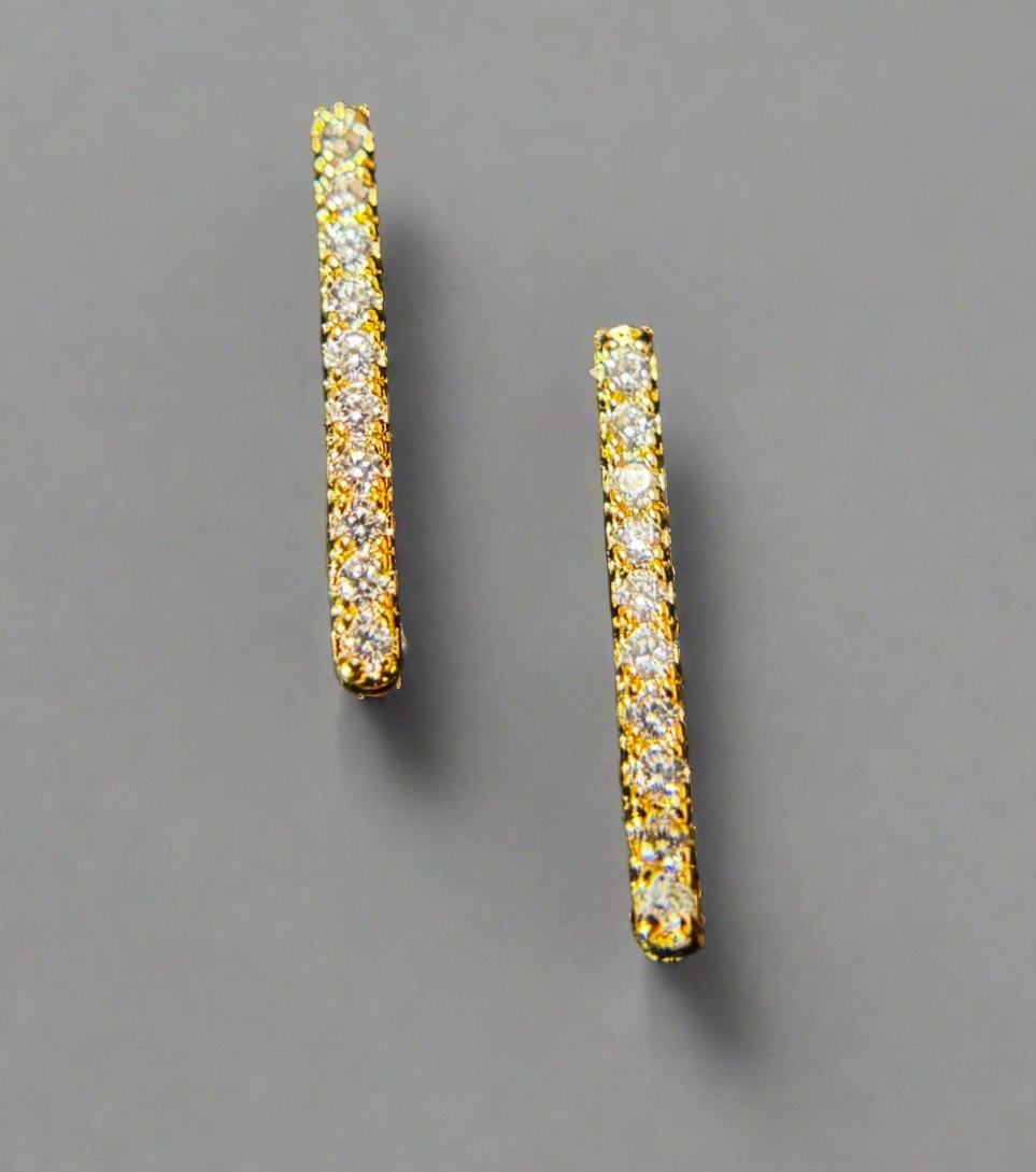 These affordable, but high-quality skinny Midi Bar studs exhibit a tiny row of AAA rated CZ’s. Bold enough to wear alone & modern minimalistic to be worn with other earrings.