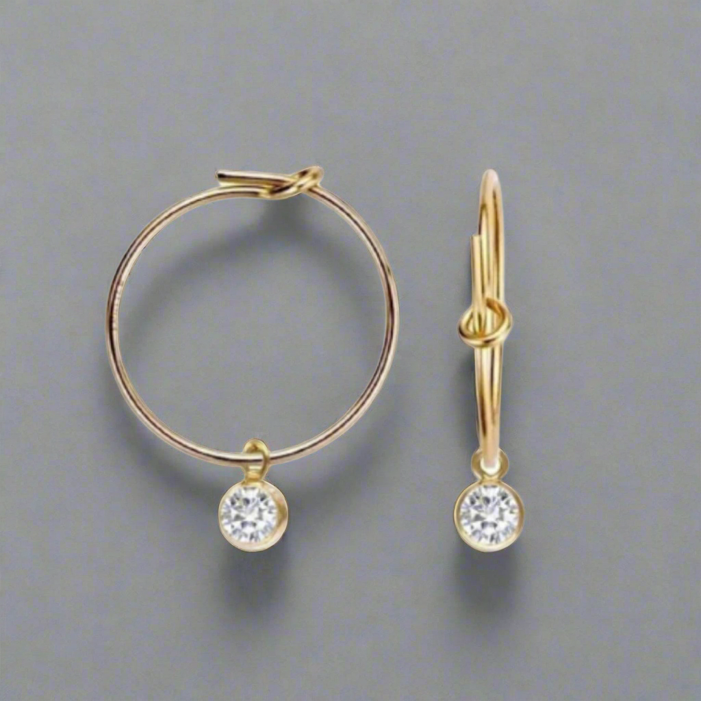 Delicate, super thin wire hoop earring featuring a lil bezel CZ. Superb choice any lobe piercing.
