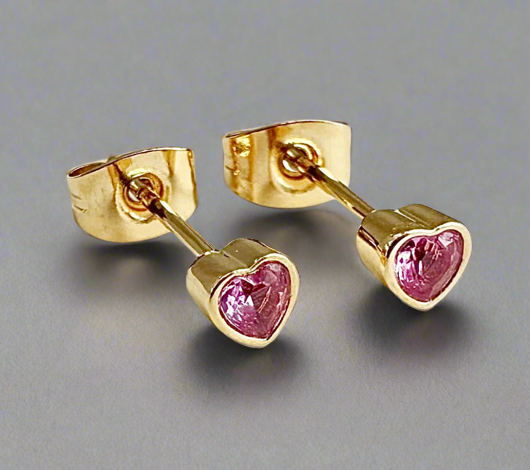 Tiny bezel crystal heart earrings are a great size for young wearers, casual dressers, data processors, professors, and everybody else that wants to pull a look together.