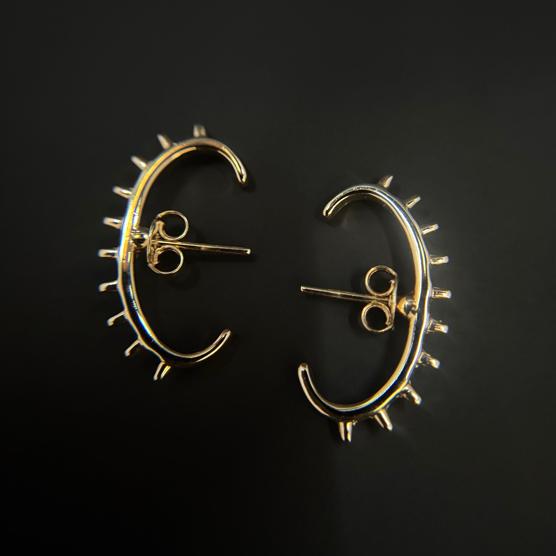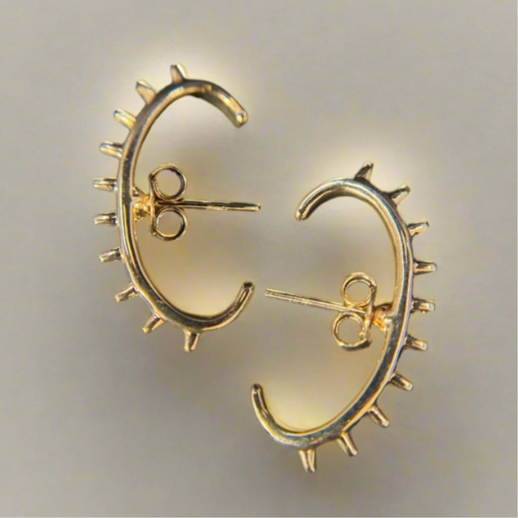 These earrings showcase a hoop/cuff with spikes and give a confident touch to a finished look.